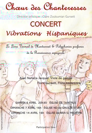 Venez découvrir les oeuvres musicales issues du Livre Vermeil de Montserrat ainsi qu'un ensemble de pièces de la Renaissance espagnole.